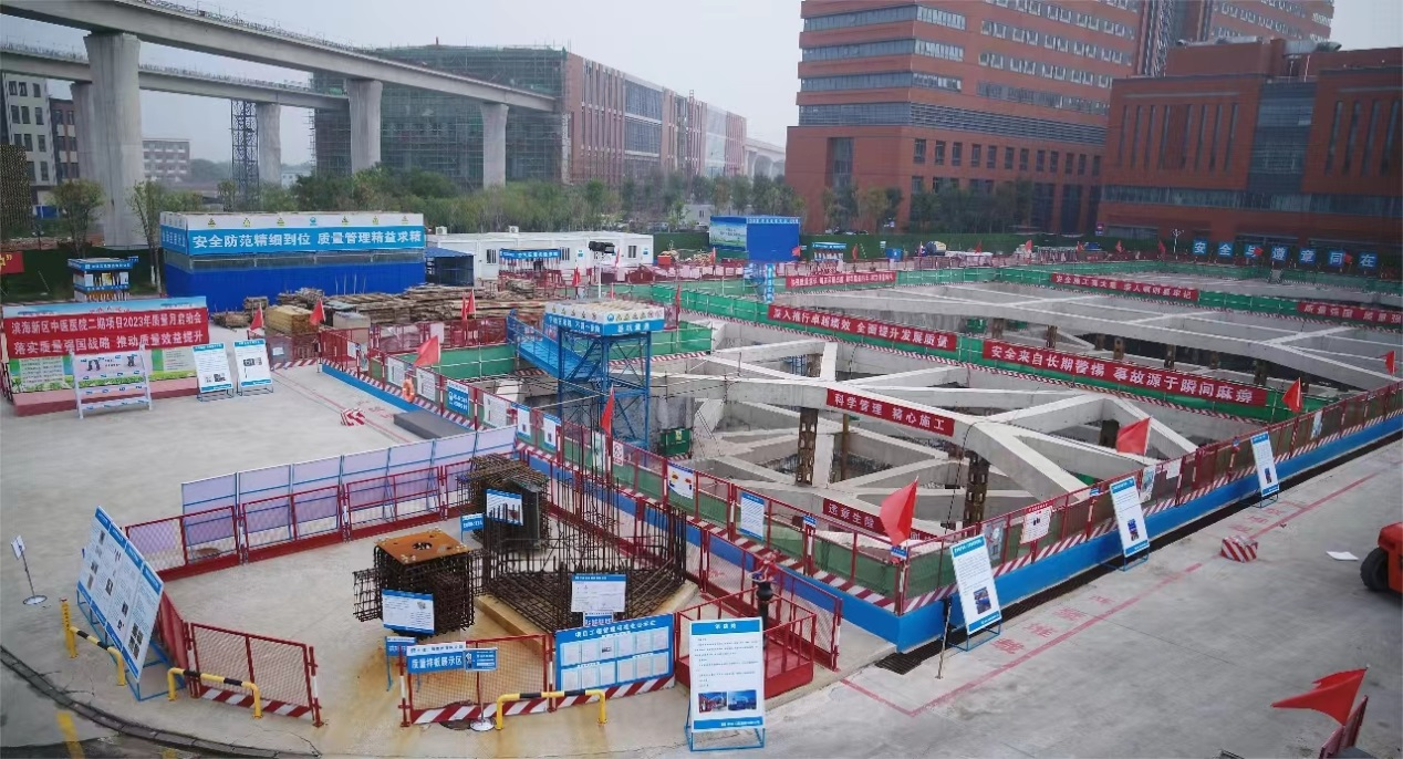 滨海新区中医医院二期项目位于滨海—中关村科技园,总建筑面积约4.07万平方米,总投资额约4.38亿元,项目由滨海新区卫健委投资建设、中建三局集团有限公司承建,目前处于深基坑地下工程施工阶段。