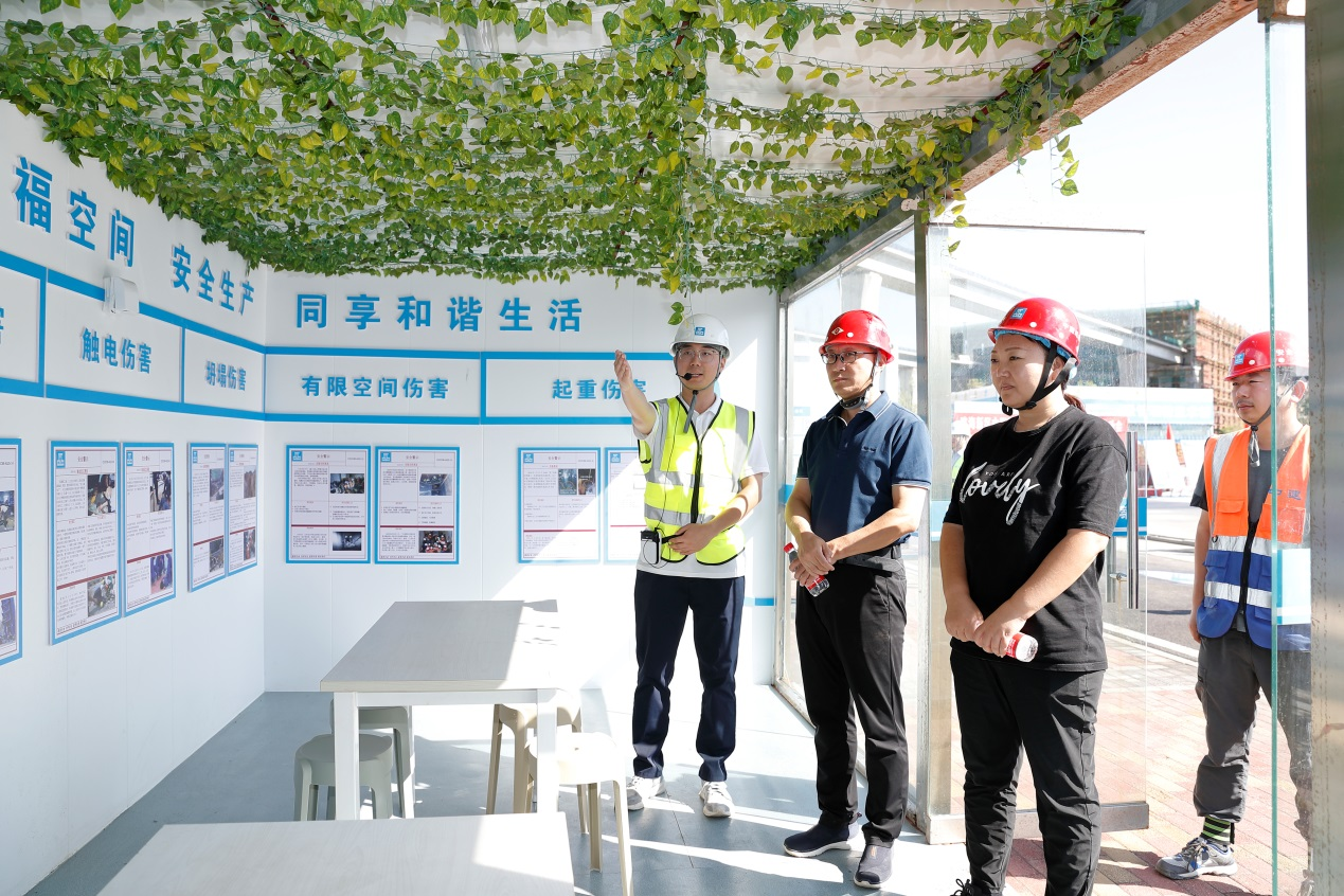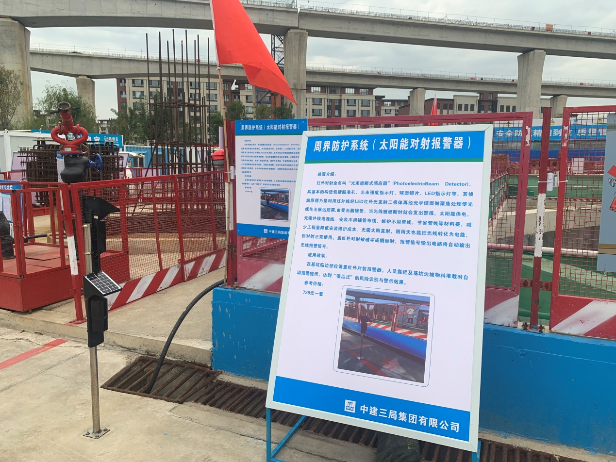 在观摩活动现场,施工单位中建三局以专项讲解、视频展示、经验分享、样板展示等形式全面展示了项目的质量安全管理亮点。质量管理方面,主要包括工序100%样板引路、一类桩的质量管理、质量控制标准化、质量风险分级管控、运用BIM技术实现交底可视化;安全管理方面,主要包括设立安全反省屋、塔吊吊钩可视化及夜间激光定位装置、一键应急呼叫器、门磁式临边防护系统、周界防护系统(太阳能对射警报器)、在线云巡更系统;智慧化管控方面,主要包括中建智安平台、无人值守智能地磅等基坑施工阶段智慧建造措施应用等。