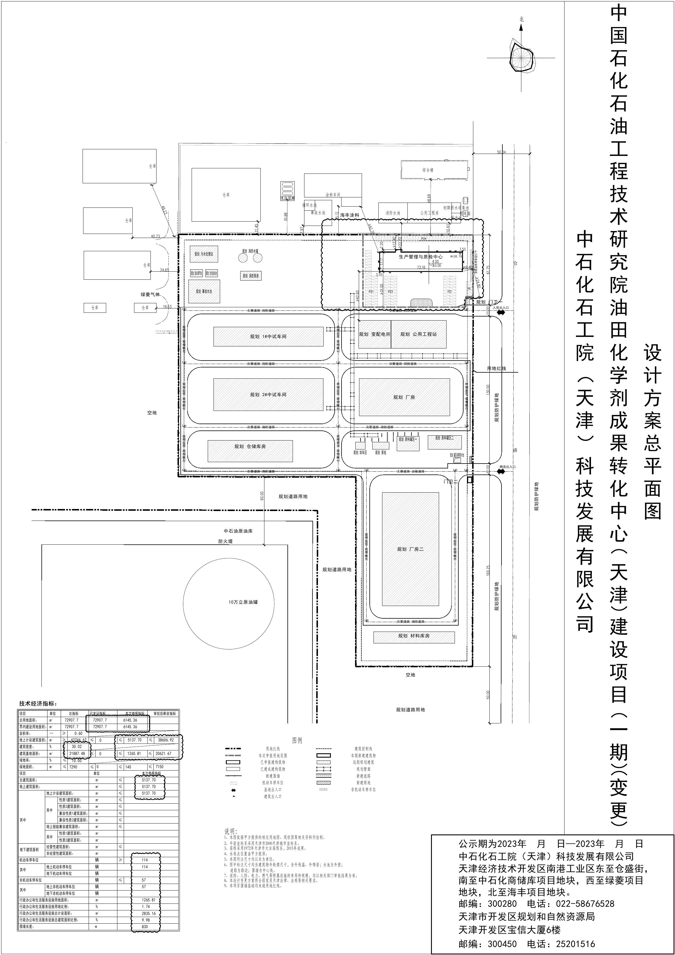 名称:中石化石工院(天津)科技发展有限公司中国石化石油工程技术研究院油田化学剂成果转化中心(天津)建设项目(一期)(变更)方案公示