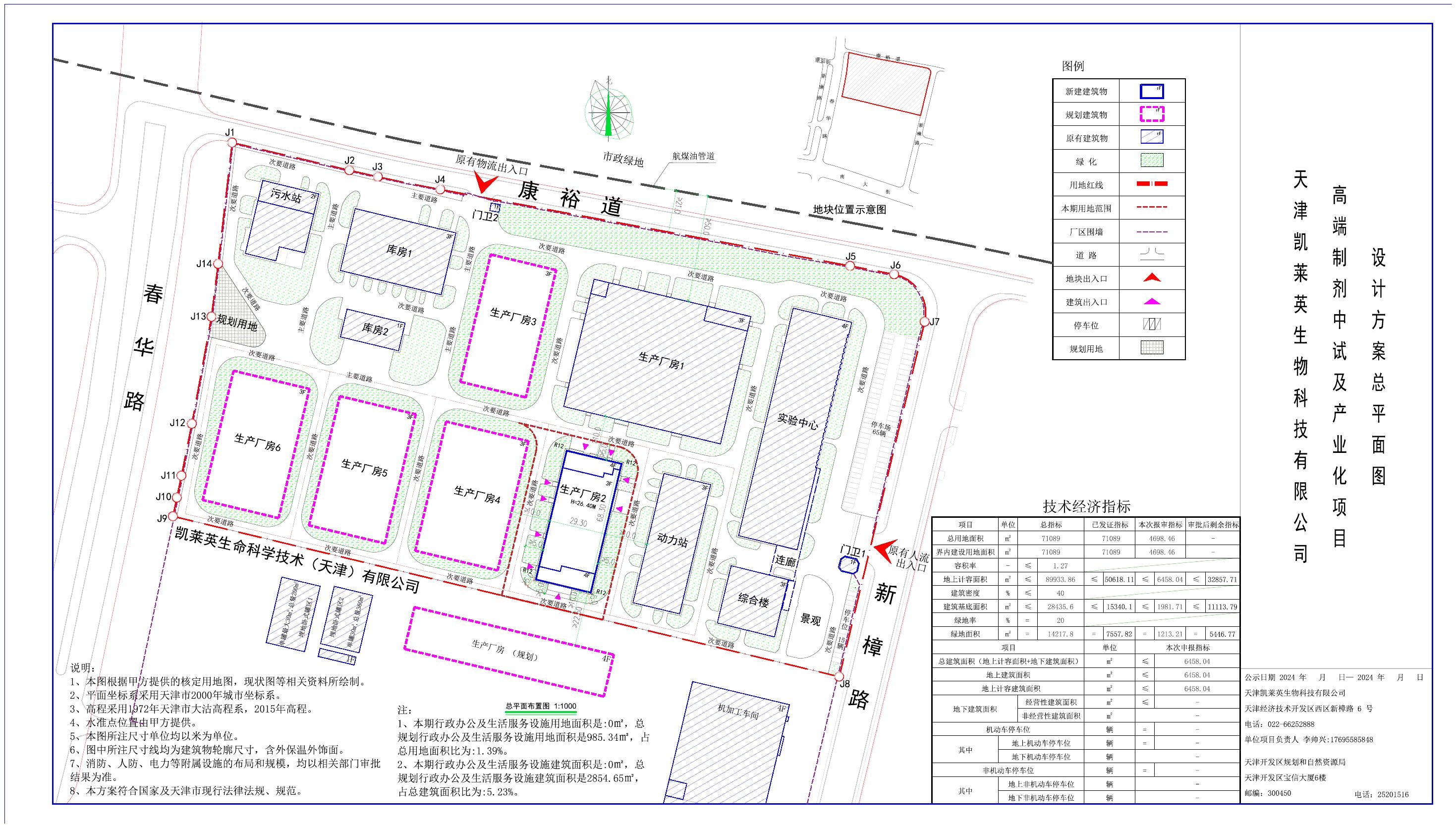 名称:凯莱英生物科技有限公司-凯莱英生物科技有限公司高端制剂中试及产业化项目方案公示