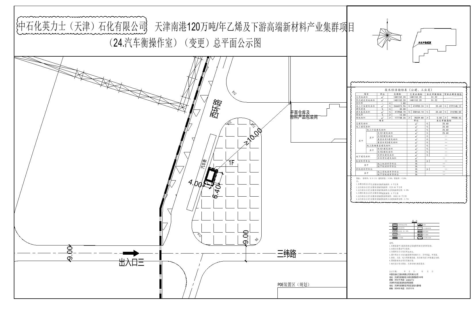 名称:中石化英力士(天津)石化有限公司天津南港120万吨_年乙烯及下游高度新材料产业集群项目(变更)(24.汽车衡操作室)总平面图公示