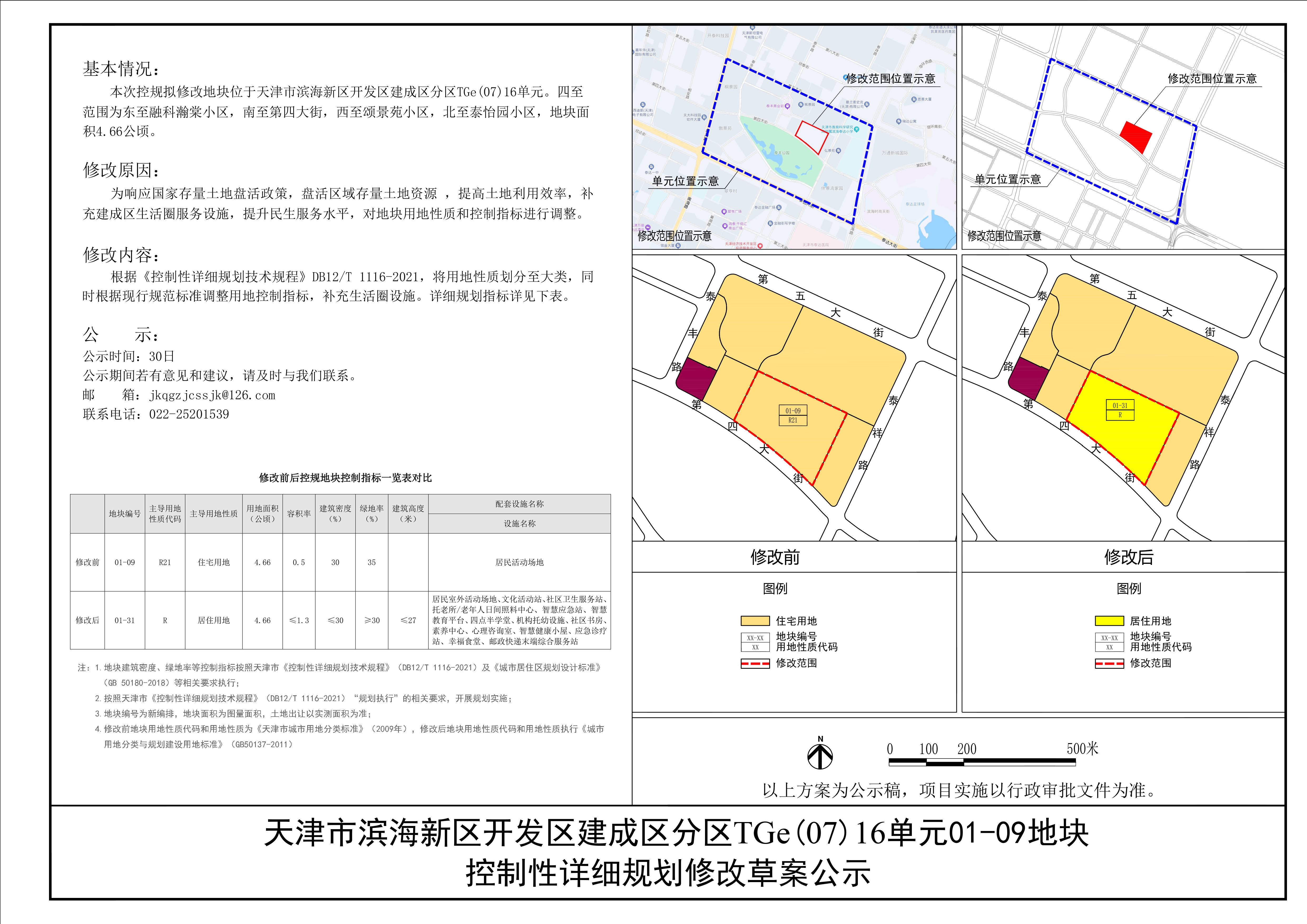 名称:天津市滨海新区开发区建成区分区TGe(07)16单元01-09地块控制性详细规划修改草案公示