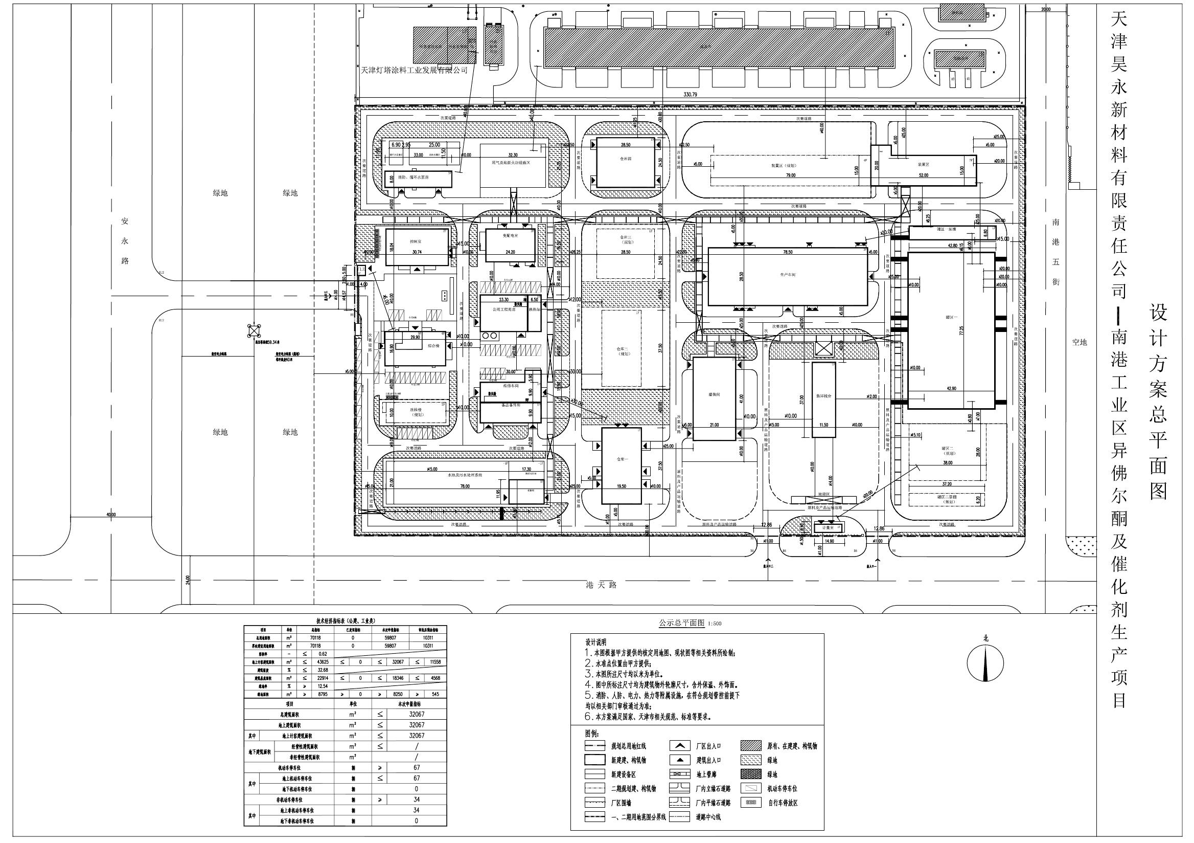 天津昊永新材料有限责任公司南港工业区异佛尔酮及催化剂生产项目规划方案总平面图已审批,审批时间为2025年4月17日,证书编号为2025开发建证0028。按照《中华人民共和国城乡规划法》《天津市城乡规划条例》的要求,现将上述工程总平面图予以公布,公布期限为信息发布之日起至建设项目规划验收合格为止。