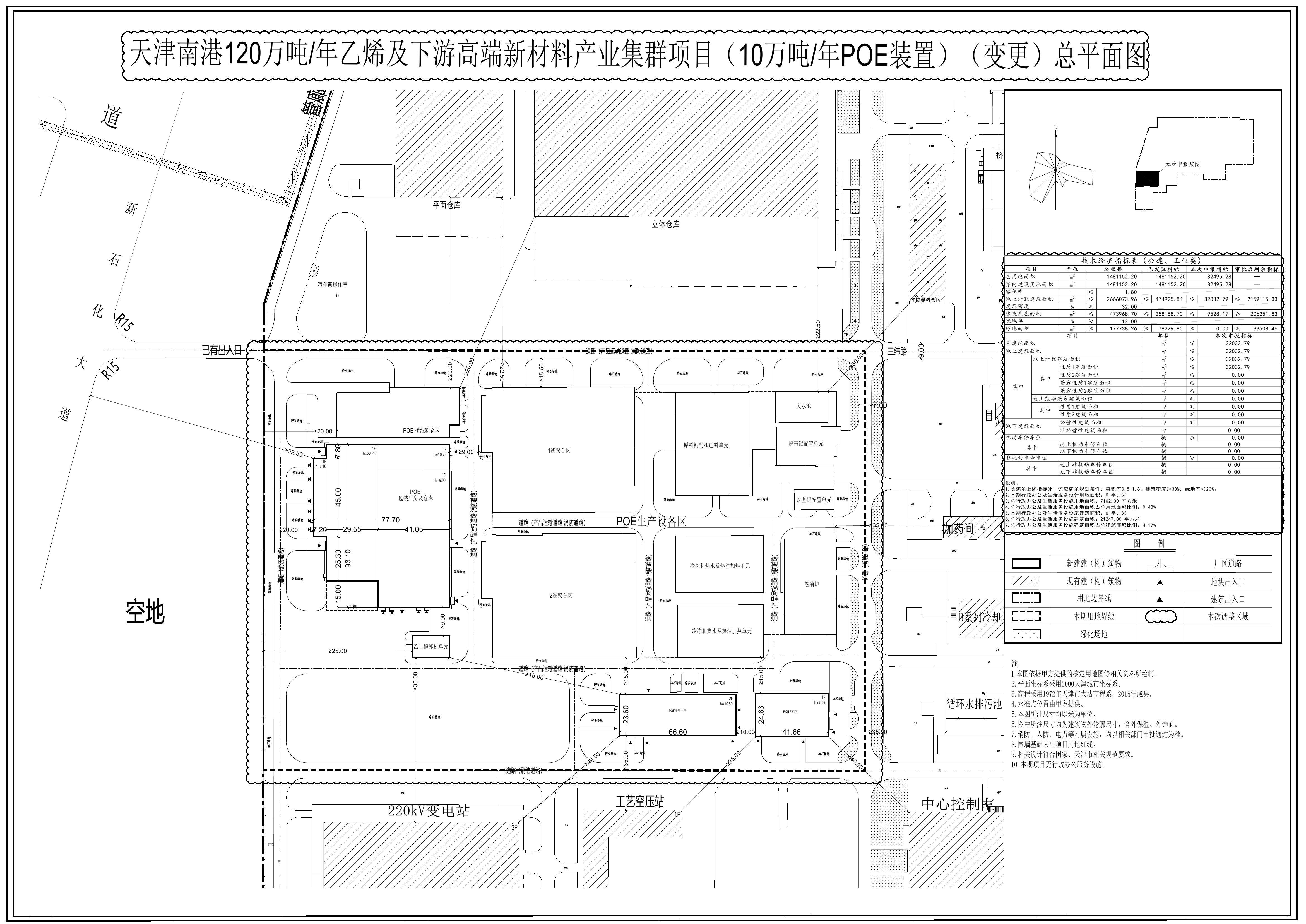 中石化英力士(天津)石化有限公司天津南港120万吨年乙烯及下游高端新材料产业集群项目(10万吨_年POE装置)(变更)规划方案总平面图已审批,审批时间为2025年4月29日,证书编号为2023开发建证0110。按照《中华人民共和国城乡规划法》、《天津市城乡规划条例》的要求,现将上述工程总平面图予以公布,公布期限为信息发布之日起至建设项目规划验收合格为止。