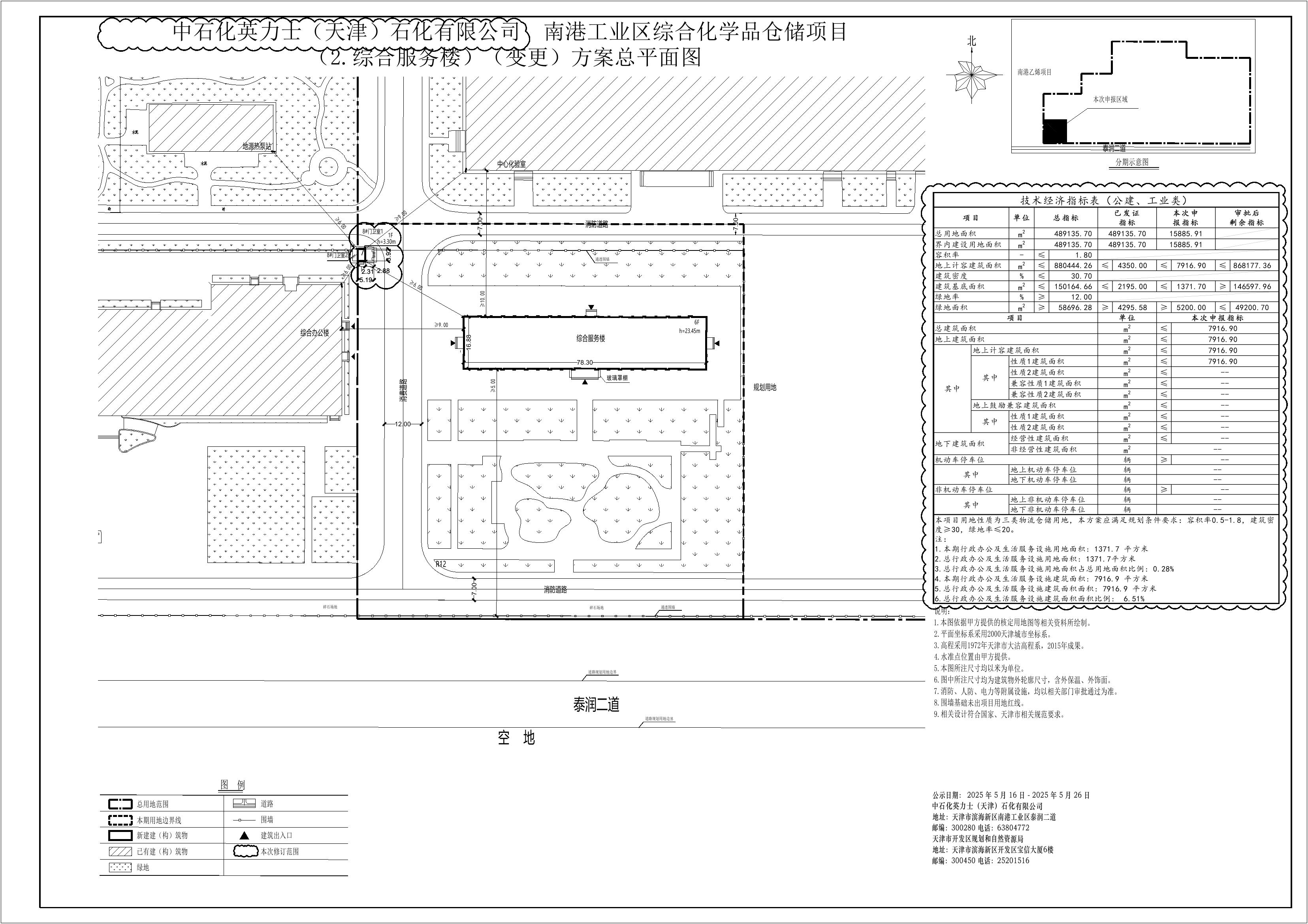 名称:中石化英力士(天津)石化有限公司南港工业区综合化学品仓储项目(2.综合服务楼)(变更)方案公示