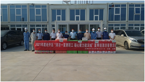 2021年8月6日,南港综合办联合总工会、南港规建局、南港应急局、南港建服中心、泰达南港集团,赴华电、渤化、北燃等建设项目,开展“情系农民工、夏日送清凉”慰问活动。