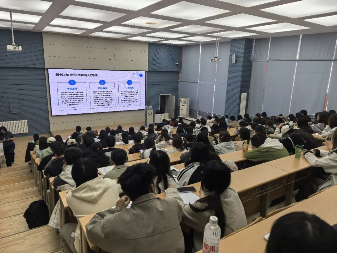 除了就业技能的提升,创业扶持政策同样是同学们关注的焦点。宣讲会上,经开区人社局相关负责同志围绕“创业政策进校园”主题,为在场师生详细解读了天津市及经开区针对大学生创业的一系列优惠政策。从一次性创业补贴的申领条件,到创业房租补贴的减负实效,再到创业担保贷款的额度与贴息流程,相关同志用通俗易懂的语言将政策条款转化为看得见、摸得着的“真金白银”。现场不少有创业想法的同学认真记录,纷纷表示这些政策礼包为未来的创业之路注入了信心和底气。