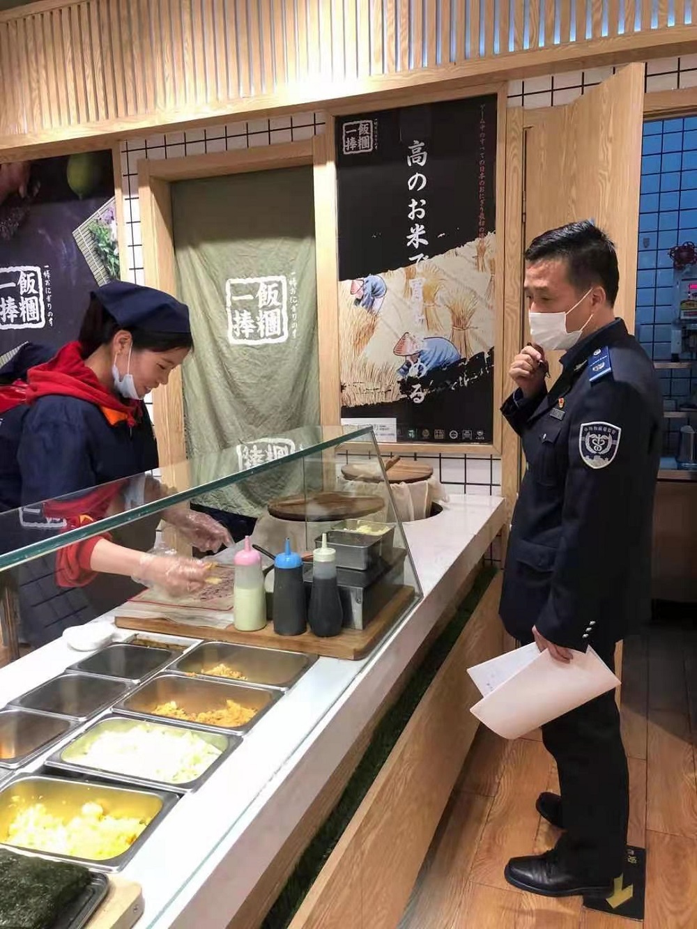 市场监管局工作人员督促食品经营者严格落实食品安全主体责任和疫情防控主体责任;全面落实食品安全自查、进货查验、过程管理、温度控制记录等责任;从严落实冷链食品疫情防控“五不准”的管理要求。同时强化进口冷链食品溯源工作。