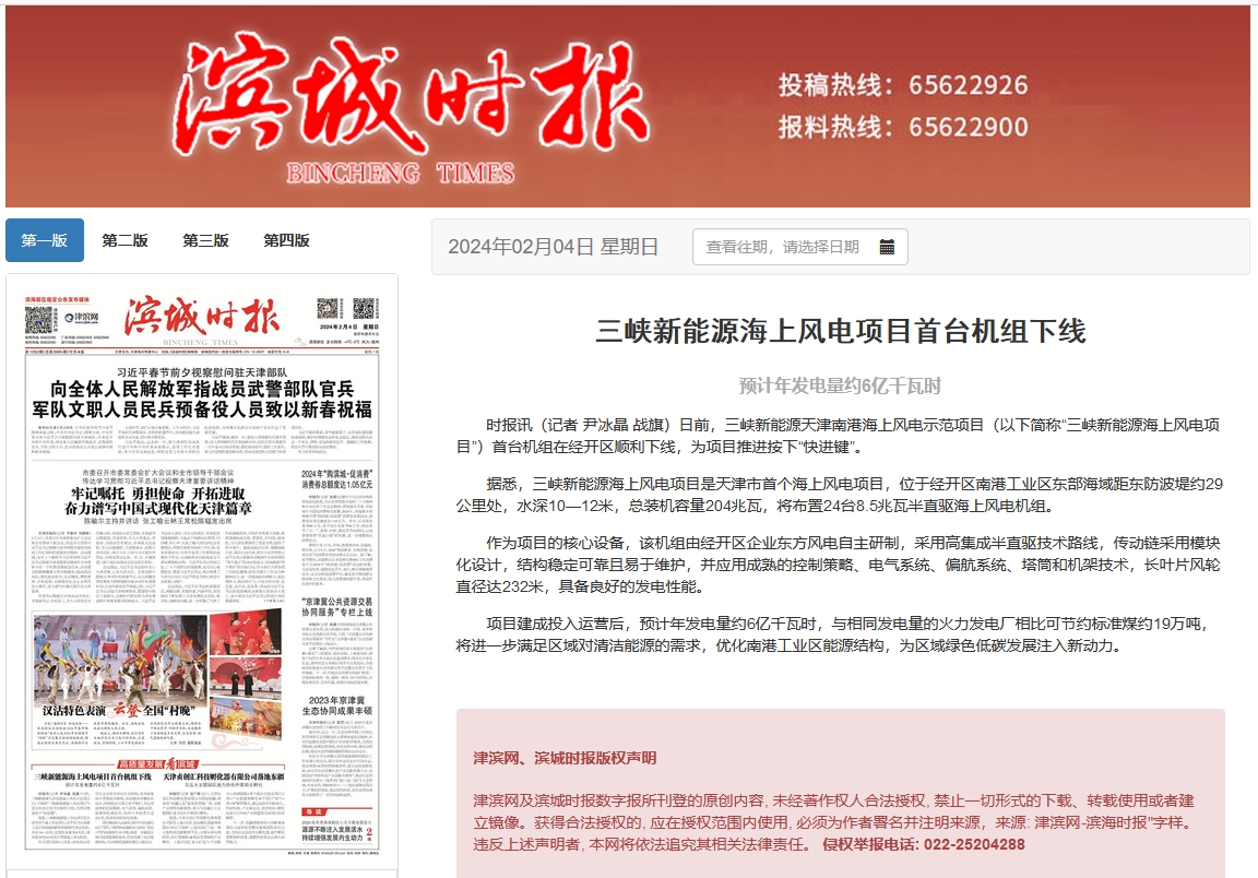 日前,三峡新能源天津南港海上风电示范项目(以下简称“三峡新能源海上风电项目”)首台机组在经开区顺利下线,为项目推进按下“快进键”。