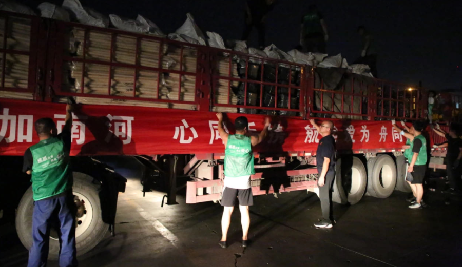 荣程集团分三批次,连夜运送物资并投入救援,物资分别送往河南省郑州市、周口市、开封市等灾民安置点。