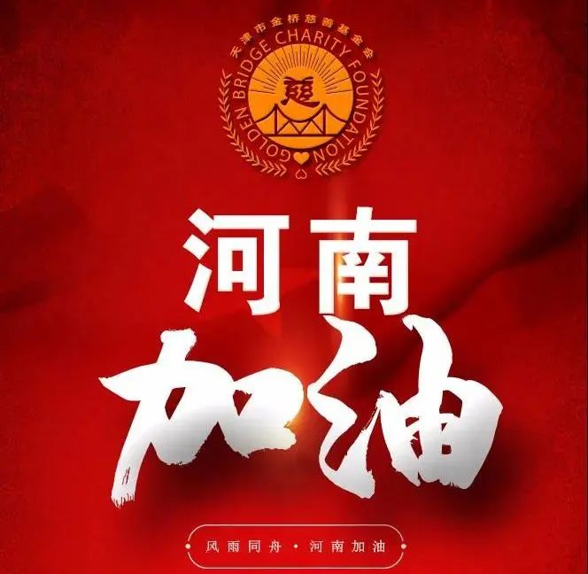天津市金桥慈善基金会密切关注灾情,传承“一方有难,八方支援”的优良传统,第一时间组织召开理事会,决定向河南捐赠100万元,用于紧急灾害救助和灾后重建,帮助灾区人民共渡难关。