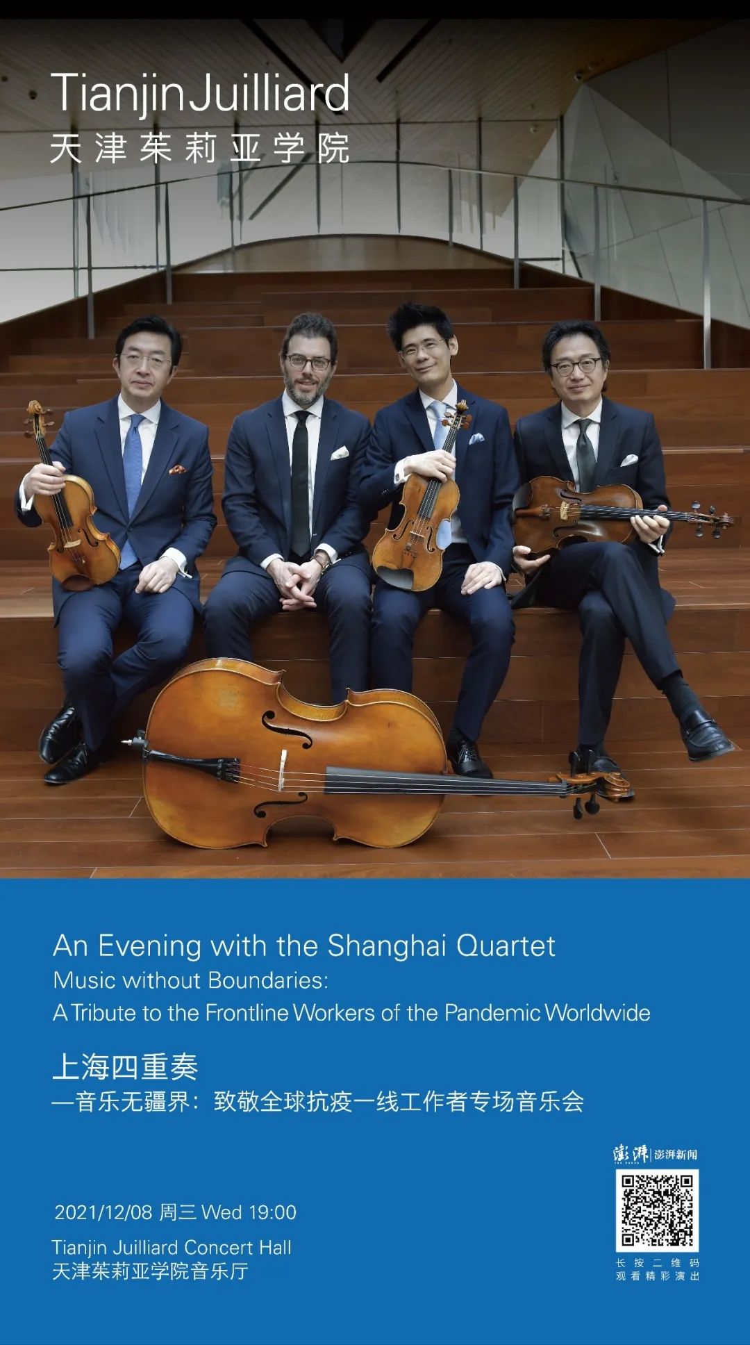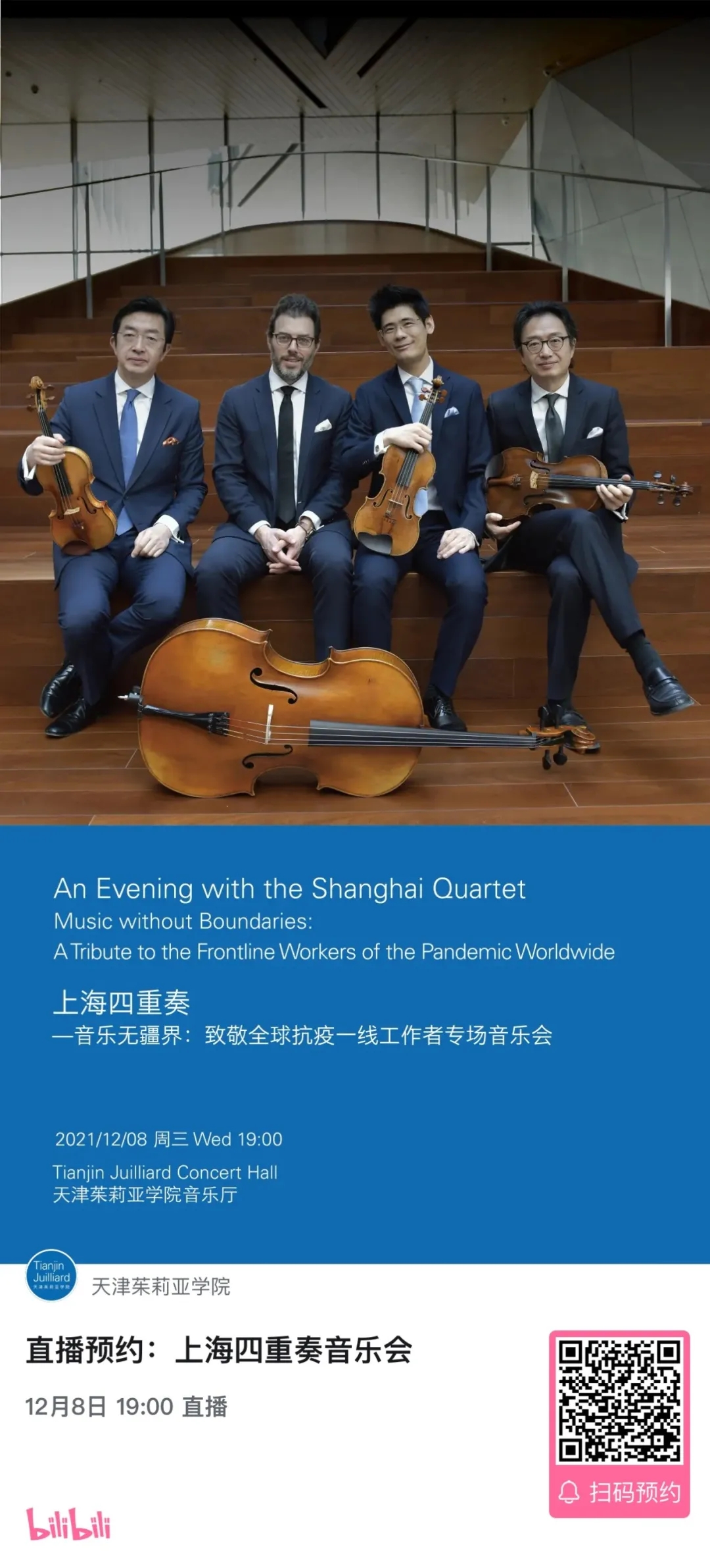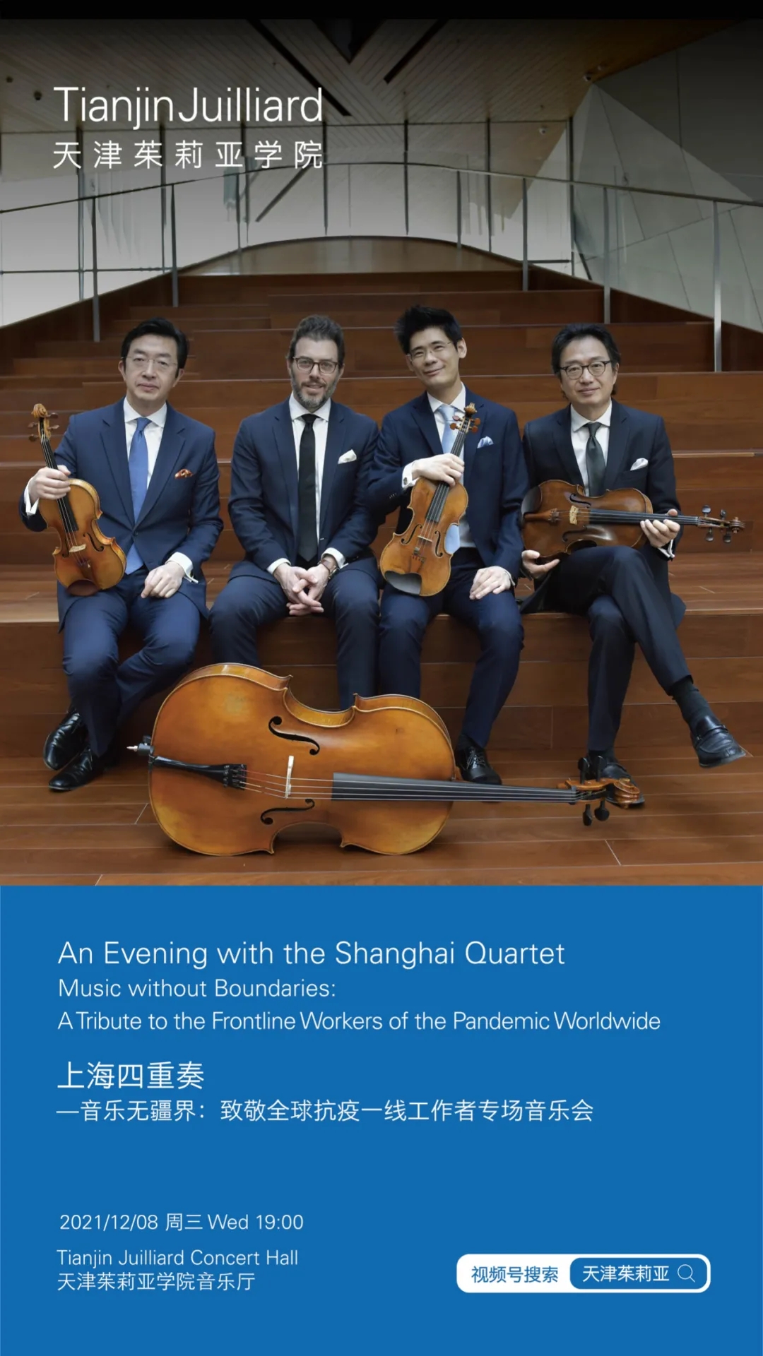12月8日,享誉世界的老牌室内乐组合——上海四重奏将在天津茱莉亚学院音乐厅举行“音乐无疆界:致敬全球抗疫一线工作者专场演出”。这是天津茱莉亚学院首次以线上直播的方式与大家分享音乐演出,届时观众可通过【央广网】【澎湃新闻】,以及天津茱莉亚学院【视频号】【微博】【bilibili】官方账号进行实时观看。作为线上观摩的福利,上海四重奏第二小提琴于翔特别录制了曲目导赏,于当晚6:45开始播出。